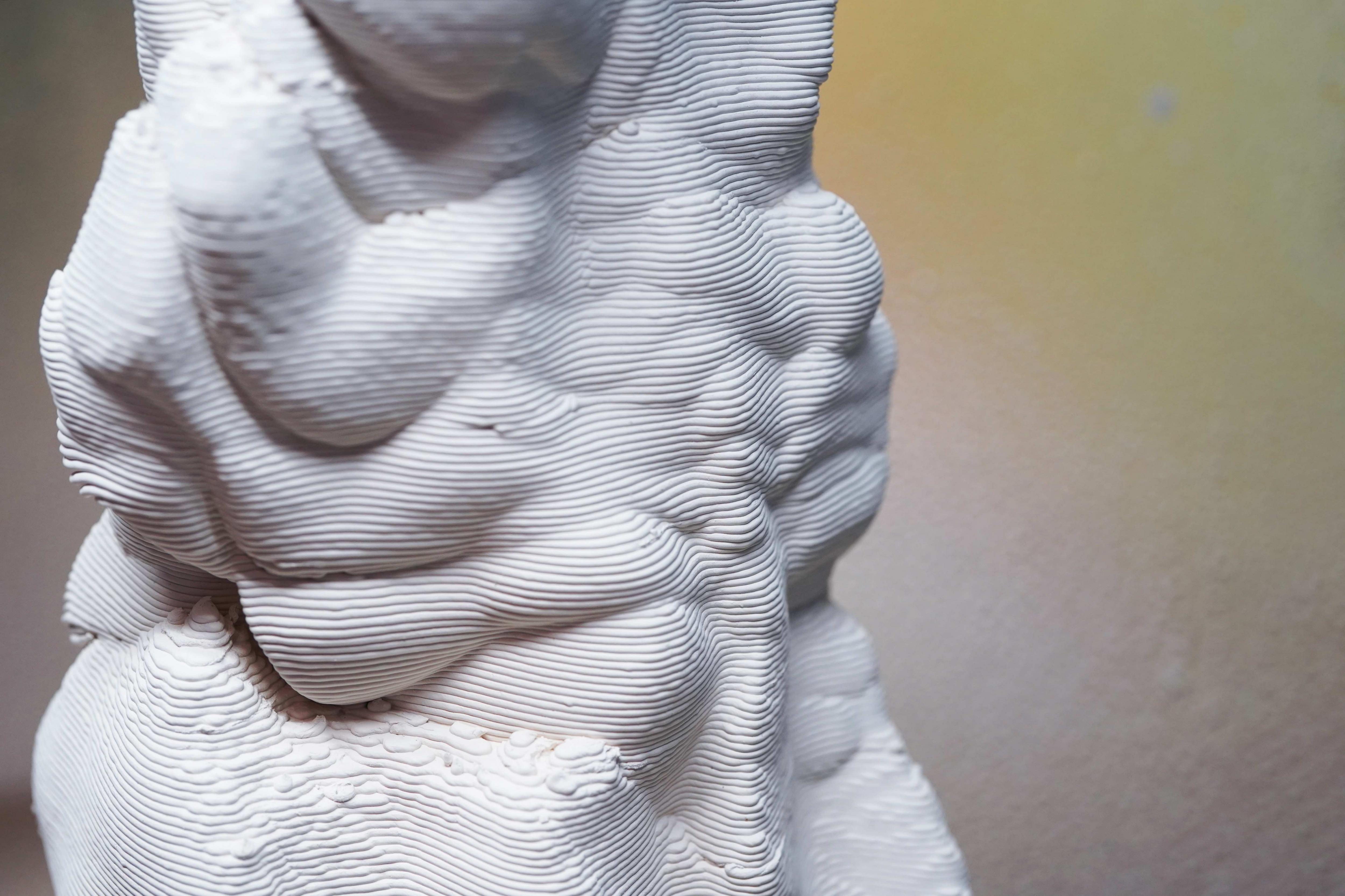 In the next stage of the project, the sculptural imprints of musical compositions acquire tactility in the form of ceramic sculptures, which are printed in collaboration with Danil Karamushkin using additive manufacturing technologies. Imprints of each musical piece become part of an exhibition composition in the Russian Museum. During real-time performances, the geometry of the sculptures transforms under the influence of brain wave activity information received from the performer. During play, the musician shows an increase in beta rhythm and simultaneously a decrease in alpha rhythm of brain activity. Considering the automatic separation of myographic artifacts, we can also obtain information about the musician's heightened concentration during the performance. Data on brain bioelectrical activity is transformed into visual patterns, forming a unique image at each moment in time.